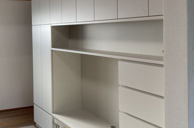 前回の投稿でもチラッと見えておりました。壁面のTVボードです。 新人のH君が、調整までバシッと仕上げてくれましたので、納品に行って...